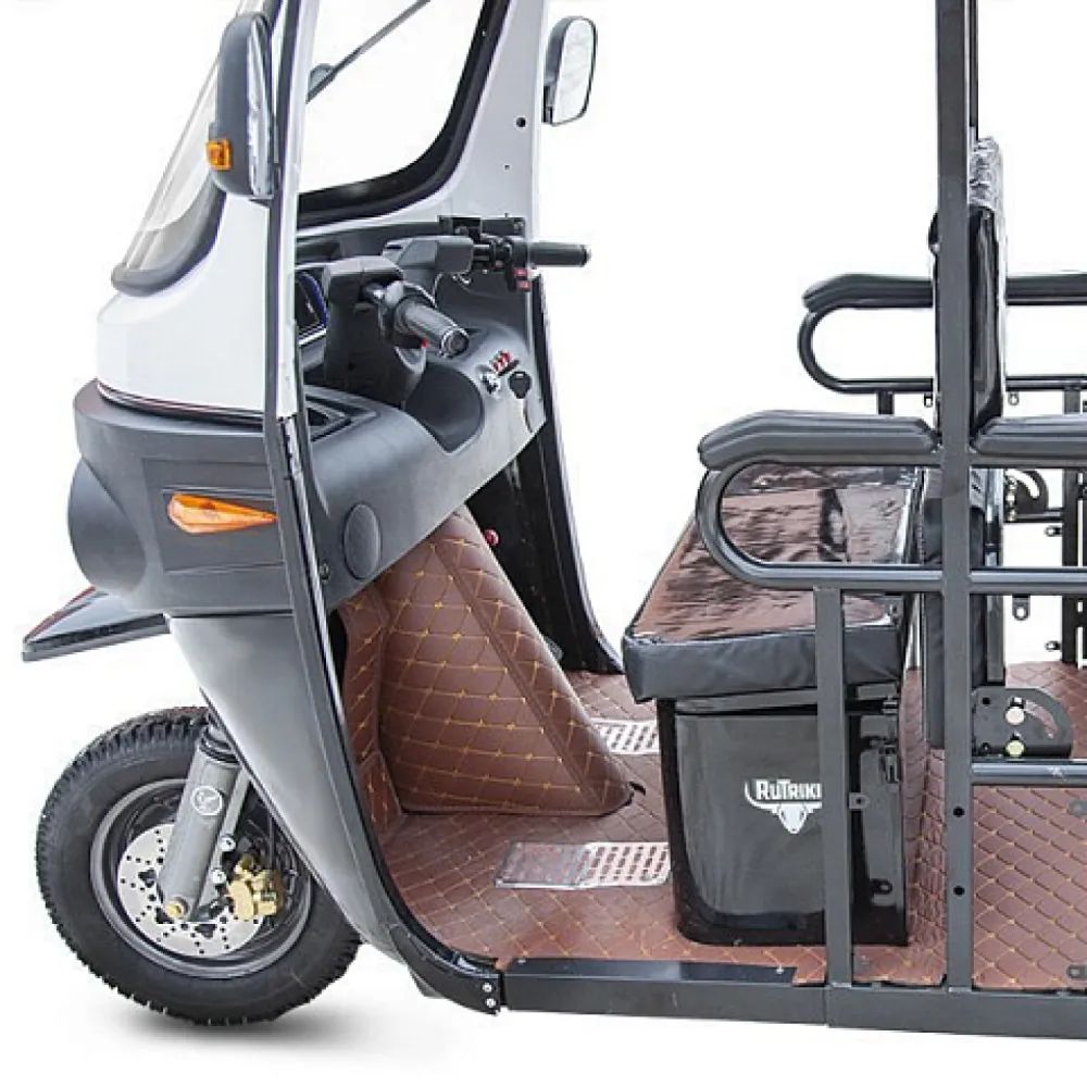 Электротрицикл Rutrike Рикша NEW 60V1800W в черно-белом цвете – лучший вариант тс для пассажирских перевозок в местах курорта и массового скопления людей. Купить крутую технику по сравнительно доступной стоимости предлагает наш интернет-магазин.