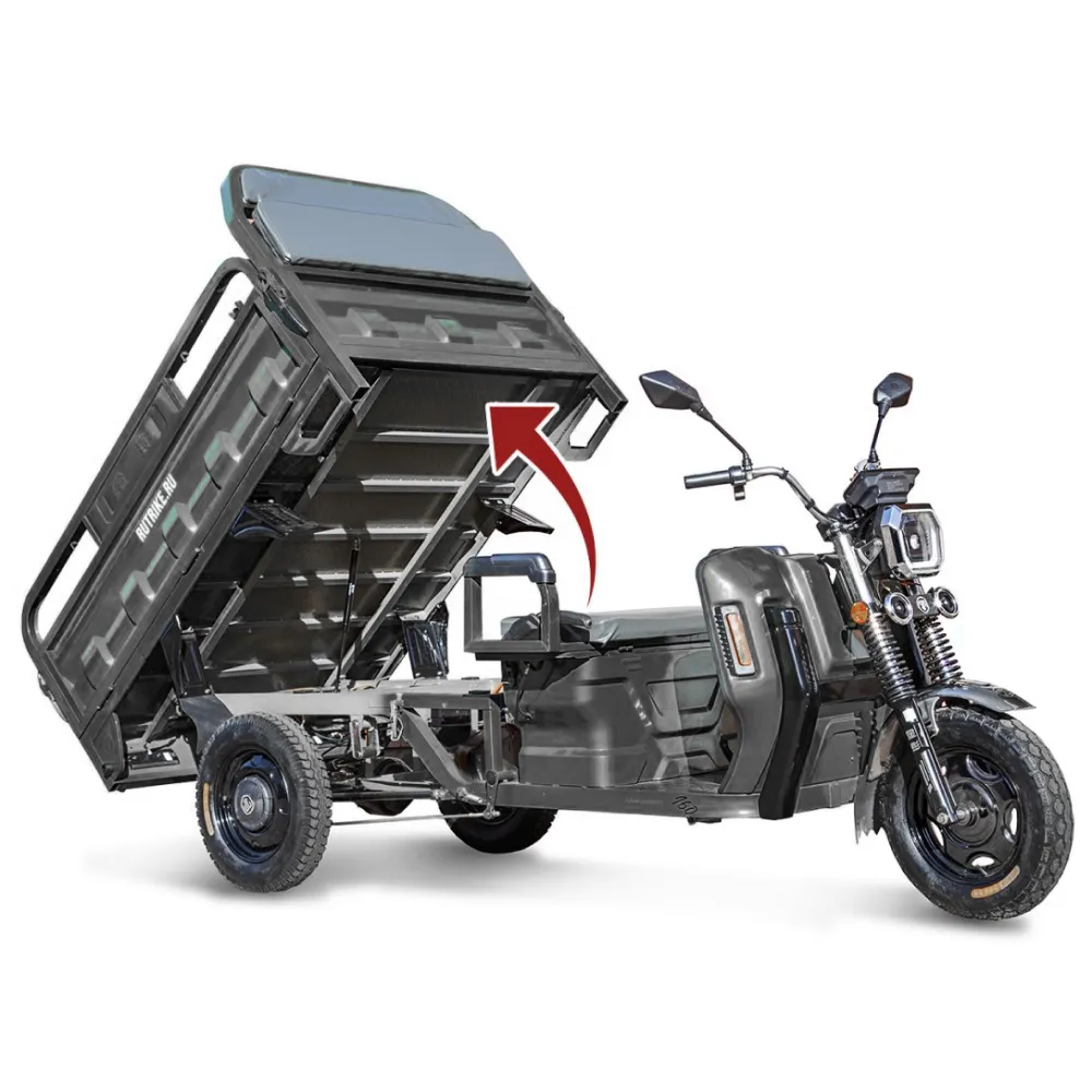 Грузовой электротрицикл Rutrike Маяк 1600 60V1000W в сером цвете - это надежное и эффективное транспортное средство для перевозки грузов. С его мощным 1000-ваттным двигателем, он способен развивать скорость до 25 км/ч, что позволяет быстро доставлять грузы на дальние расстояния.