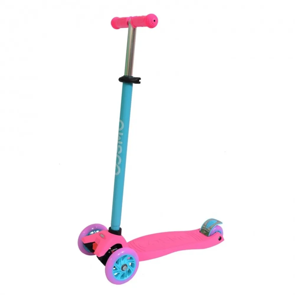 Регулируемая стойка может фиксироваться по высоте в трех различных положениях (78, 84 и 90 см) – с ней самокат будет «расти» вместе с ребенком! На руле находятся удобные и гипоаллергенные резиновые ручки, которые позволяют плотно удерживать руль во время движения.