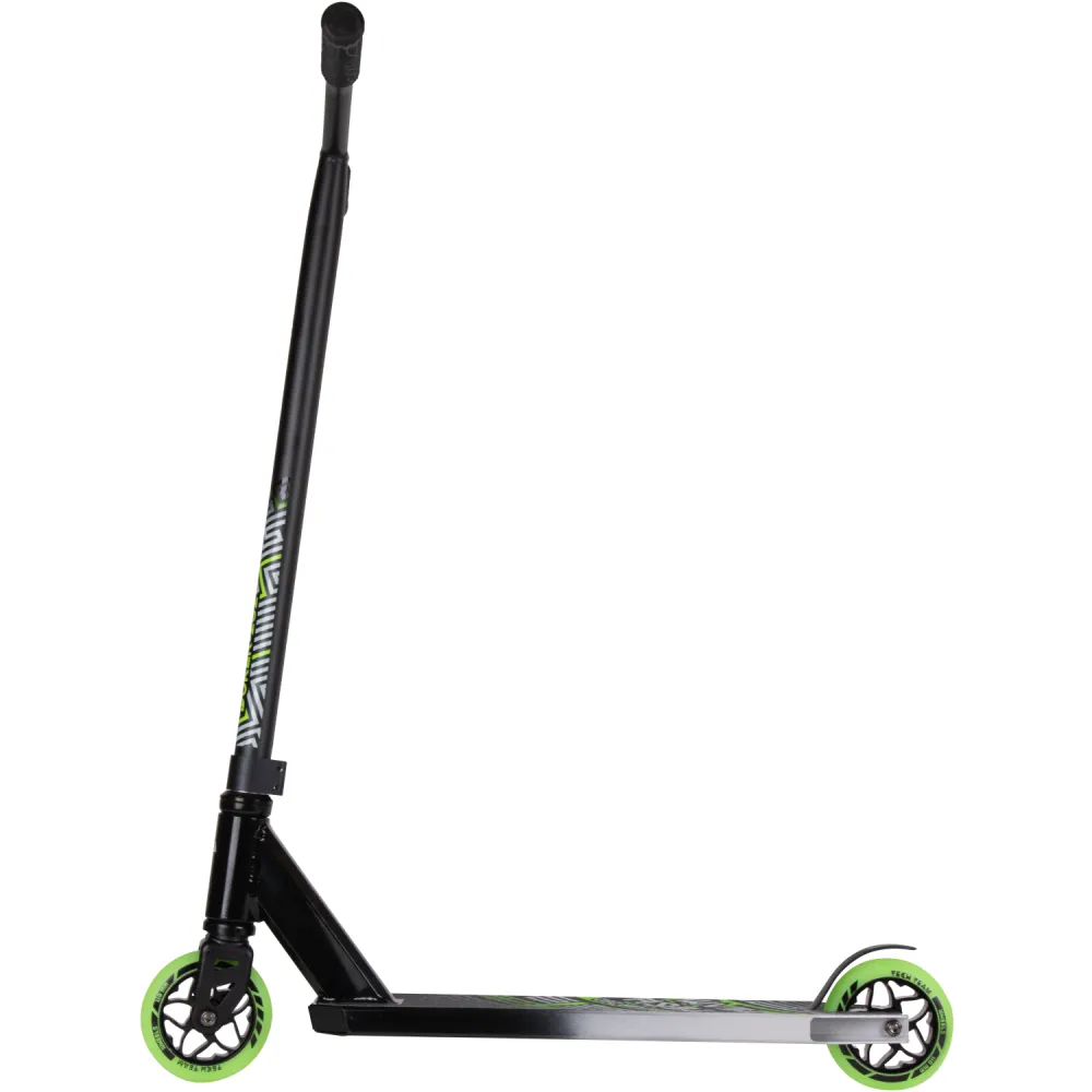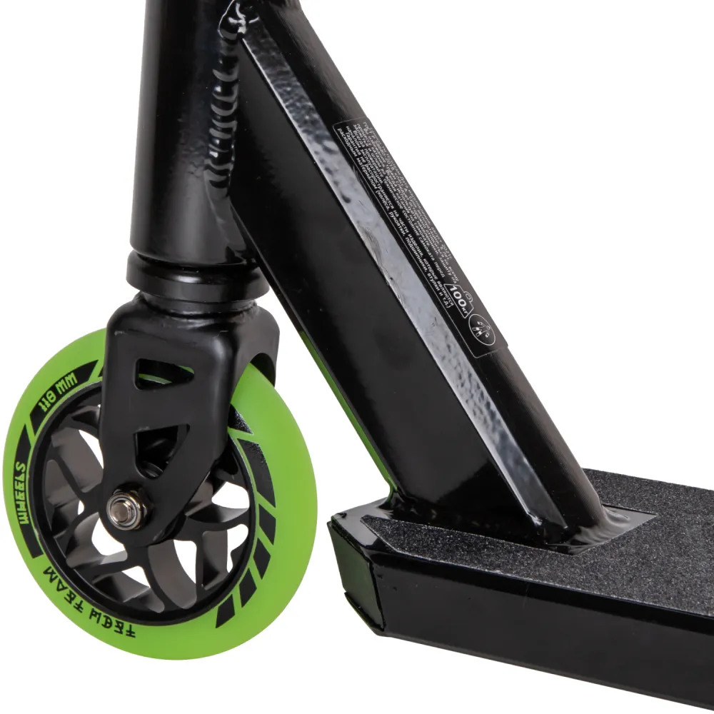 Модель трюкового самоката представлена компактными эргономичными характеристиками. При относительно небольшом весе (3,55 кг) дает возможность легко брать на прогулку и в путешествие. Широкая устойчивая платформа для ног была разработана производителем с учетом пожеланий самых требовательных райдеров. Покрытие платформы представлено нескользящей шкуркой, увеличивающей степень безопасности. Техника изготовлена из прочной стали, длительно сохраняющей свои первоначальные характеристики. Комфорт модели обеспечивается регулируемым рулем, что дает возможность передвижения без ощущения дискомфорта. Яркие светящиеся колеса делают технику узнаваемой.